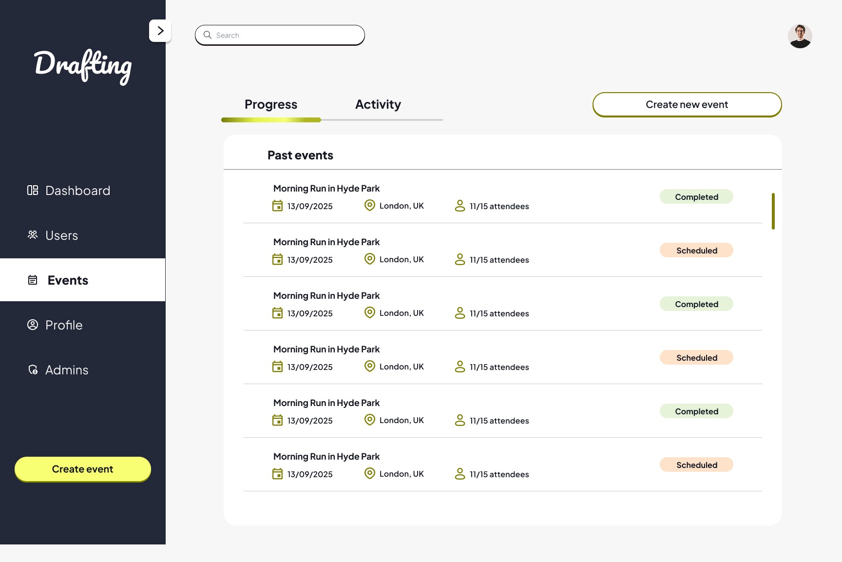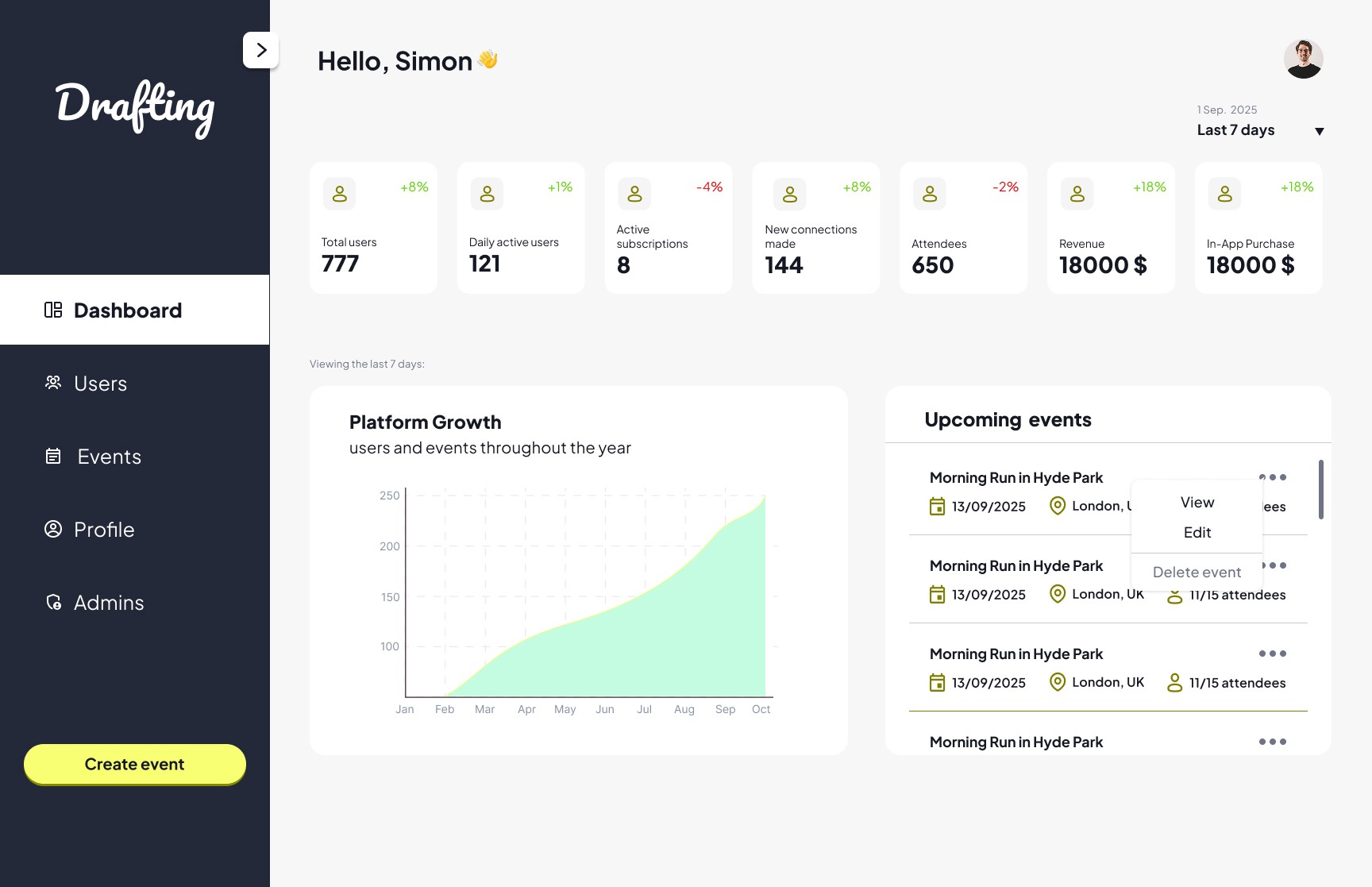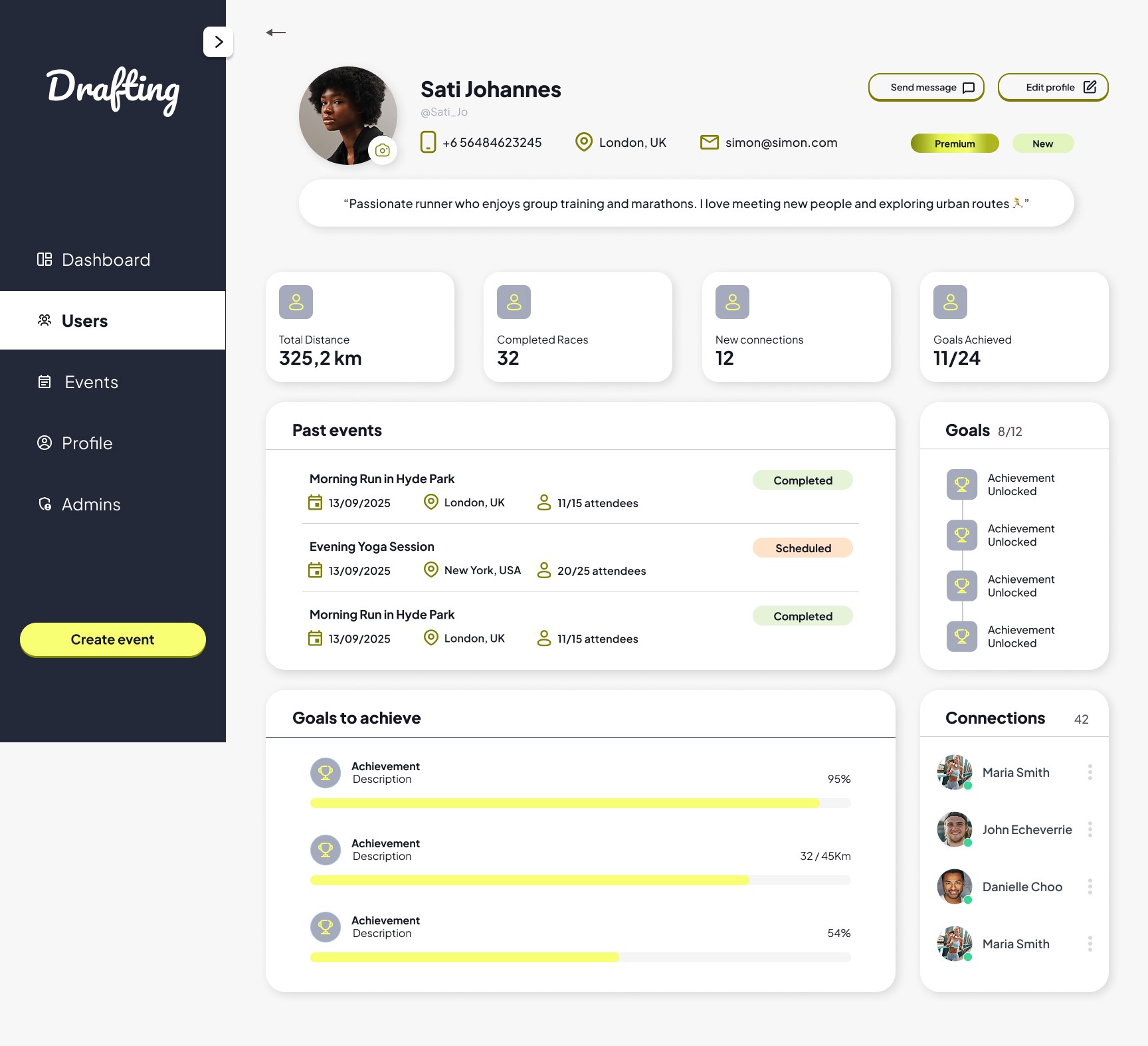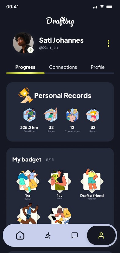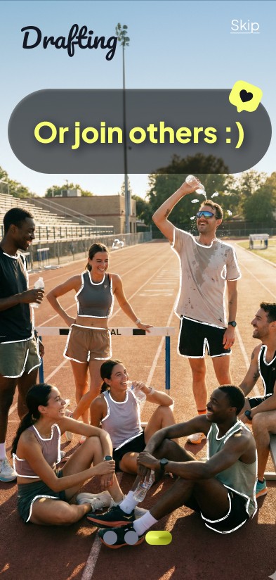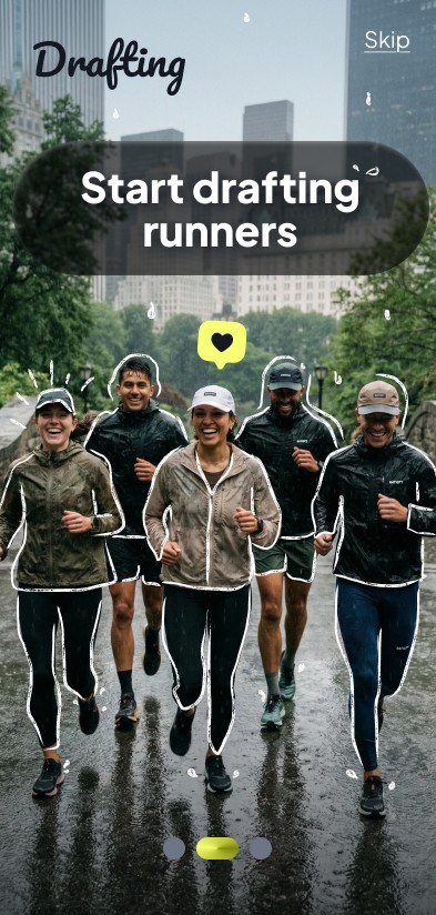 Drafting is a social platform designed to connect people through shared interests, specifically running, using sport as a catalyst for social interaction in a safe environment.