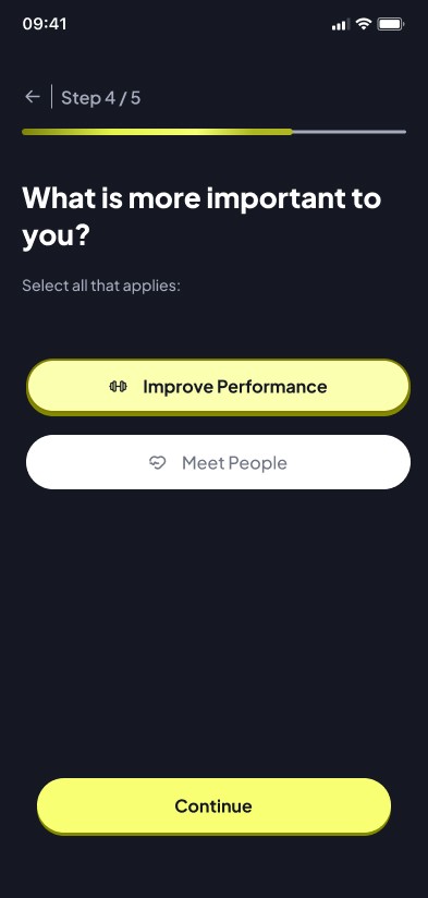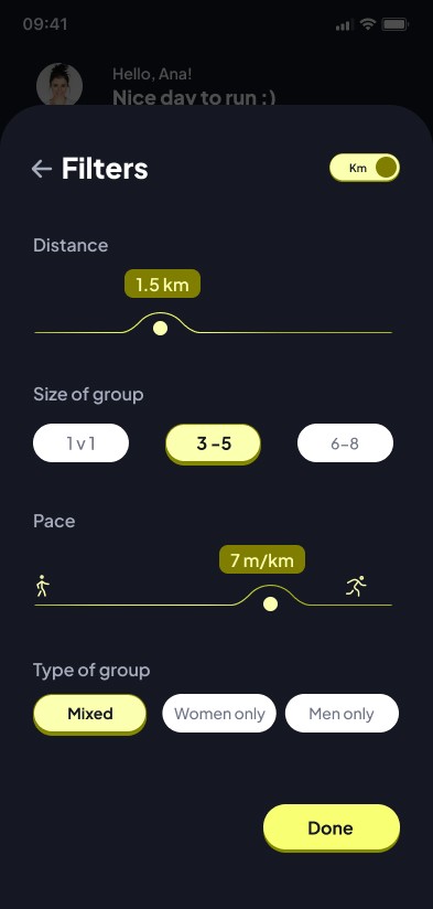 El desafío principal fue diseñar un MVP escalable basado en un modelo Freemium. Tuve que estructurar una experiencia fluida que equilibrara el acceso gratuito (2 carreras al mes) con incentivos claros para la suscripción premium (carreras ilimitadas y creación de eventos por parte de los usuarios). Dado que no existían activos visuales ni sistemas de diseño previos, el objetivo fue construir una interfaz funcional robusta que definiera el ADN estético de la marca directamente a través de la UI del producto.