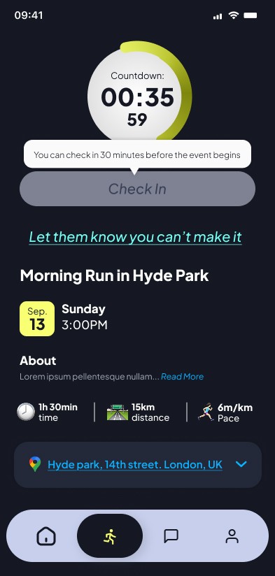 Proximity-Based Validation: The "Check-in" interface is activated exclusively via geolocation and specific time windows near the event.