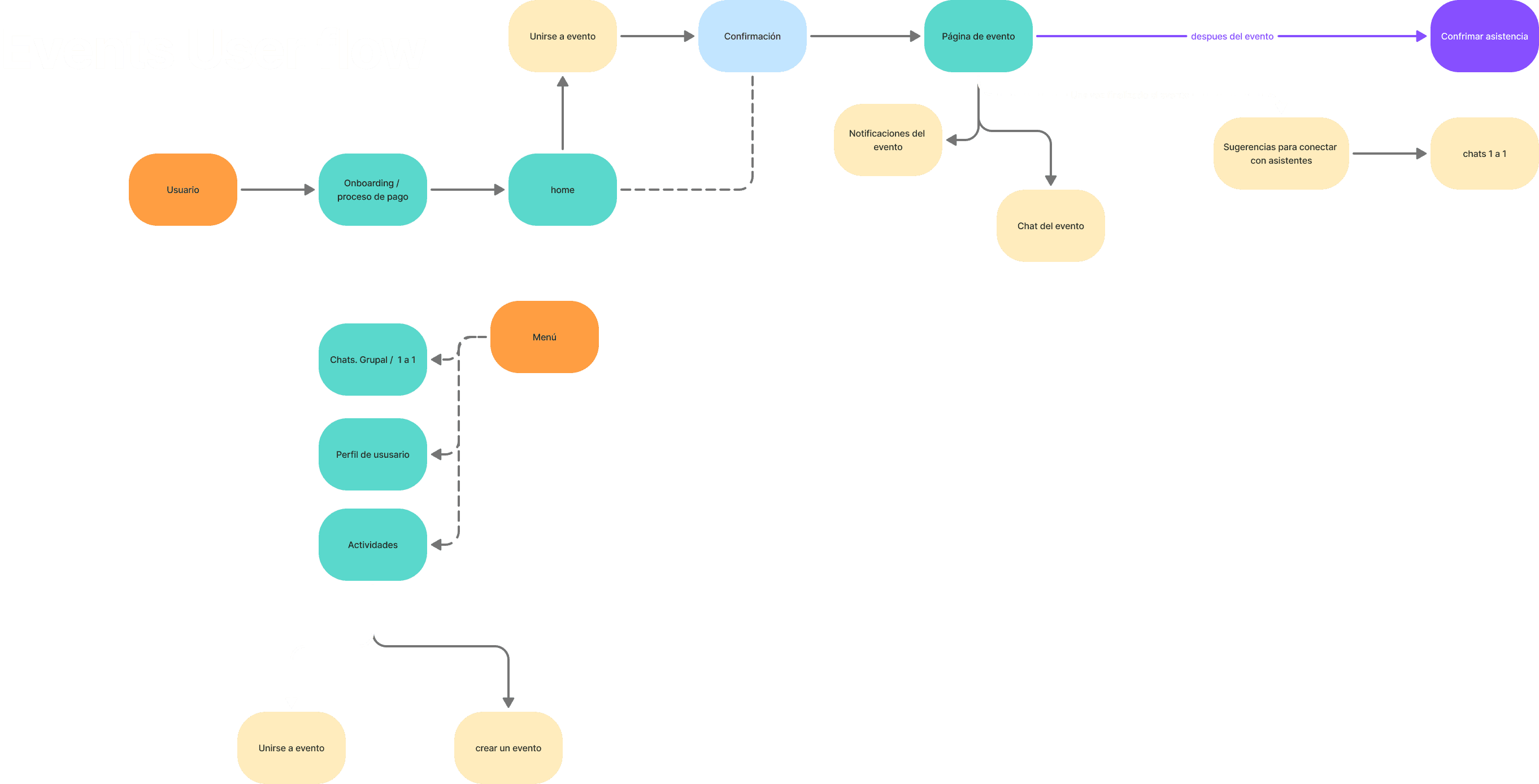 Ideación de Funcionalidades: Utilicé IA para generar escenarios de uso y "casos de borde" (edge cases), ayudando al cliente a visualizar la complejidad de los eventos generados por los usuarios frente a los eventos dirigidos por administradores.