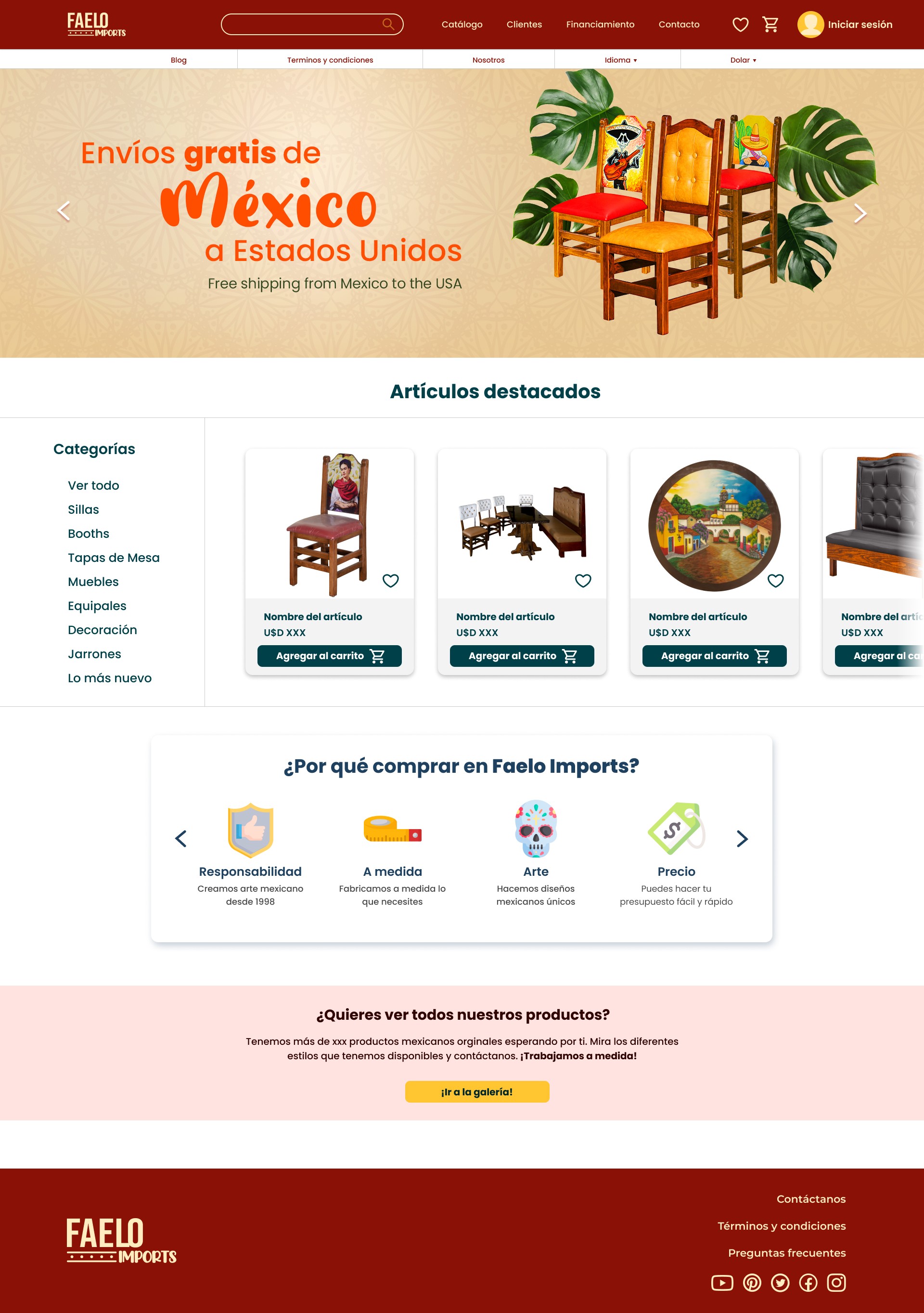 Faelo is a Mexican franchise that exports traditional Mexican furniture to the United States. Faelo Imports sells their most authentic pieces, while Faelo Premiere focuses on their most exclusive designs.